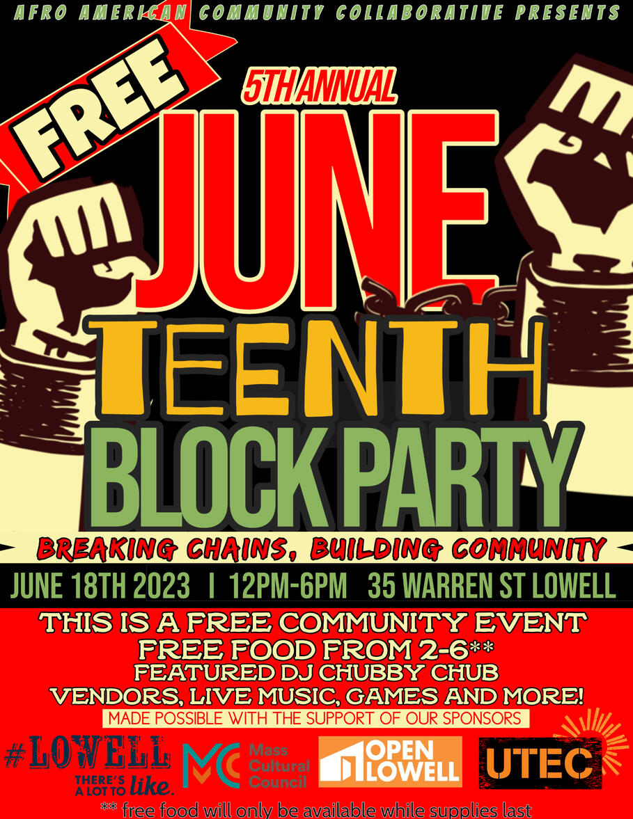In the spirit of community celebration and national recognition, The Afro-American Community Collaborative was excited to announce our 3rd Annual Juneteenth & Father's Day Block Party. The Green @ UTEC provided us with the space where BIPOC-owned vendors, local artists and performers, and community-based organizations showcased their brilliance and celebrated their culture with the community in a fun and safe environment. Our vision was to create a welcoming space for all with 300+ guests. With Free food and snacks for all