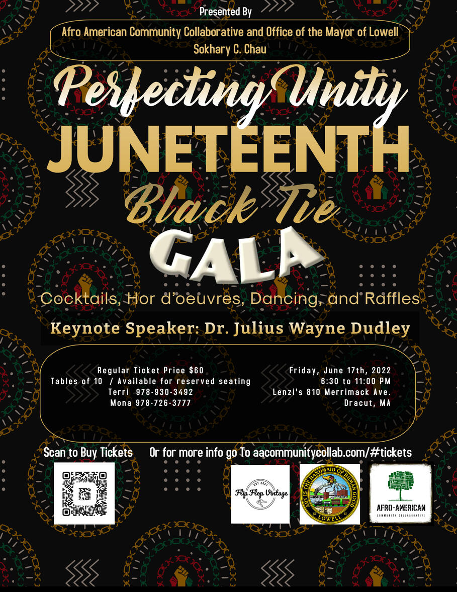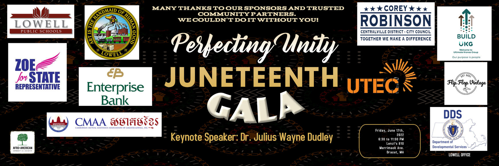 The Afro-American Collaborative Community held our First Annual Juneteenth Black Tie Gala celebrating the community's culture and unity. This event created an environment where everyone was able to network with each other, honor our community's achievements, and have time to be proud of our history, culture, and heritage. 275 people joined us for a night of excellent food, dancing, and entertainment.Our Keynote speaker was Dr. Julius Wayne Dudley, professor emeritus of history at Salem State University. Dr. Dudley has played a pivotal role as a civil rights activist and educator throughout his lifetime. From marching alongside Martin Luther King, Jr. and Congressman Joe Lewis in the 1960s to working with Archbishop Desmond Tutu in post-apartheid South Africa, Dr. Dudley has devoted himself to serving others.Recognizing his tireless work, we honored Dr. Dudley with the Afro-American Community Collaborative Perfecting Unity Award.